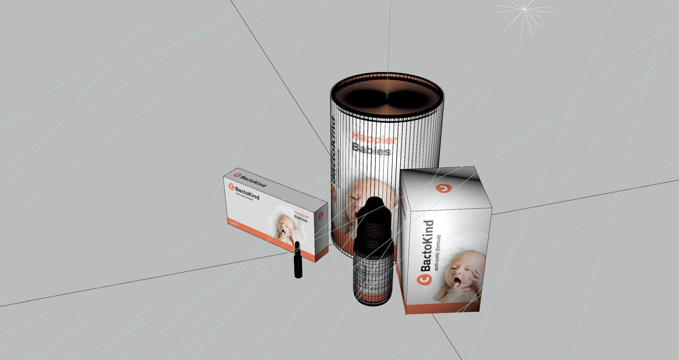 Szenenaufbau im Cinema 4D. Für jedes Produkt gibt es eine separate Kameraeinstellung.
